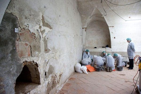 —Y controlarlos un poquillo, de lejos, pero un poquillo también —dirá la voz antigua de la madre superiora que sale del claustro a por la bocina.La relación entre el equipo y las monjas se hizo íntima. Con los días, sor Edita se dejó poner una bata blanca sobre el hábito, una mascarilla, cofia y guantes, y ayudó a limpiar los huesos con pinceles. La mayor sólo miraba, excepto esa vez que inspeccionó en dos ataúdes y agarró con sus propias manos desnudas la vestimenta para decir que era de cura.A la 1:30, al mediodía, Almudena García, Berta Martínez y Luis Ríos habrán acabado la jornada. Sor Edita los esperará arriba en la entrada de la sacristía. Subirán las vetustas escaleras, la monja los recibirá con un manojo de las llaves de hierro antiguas en una mano, agujas de tejer y lana en la otra, hábito blanco, cruz rojiazul en el pecho, túnica negra. Entre dos cerrarán la puerta trampa. Sor Edita dirá, queda, que los extraña y que quiere que vengan todos los días.