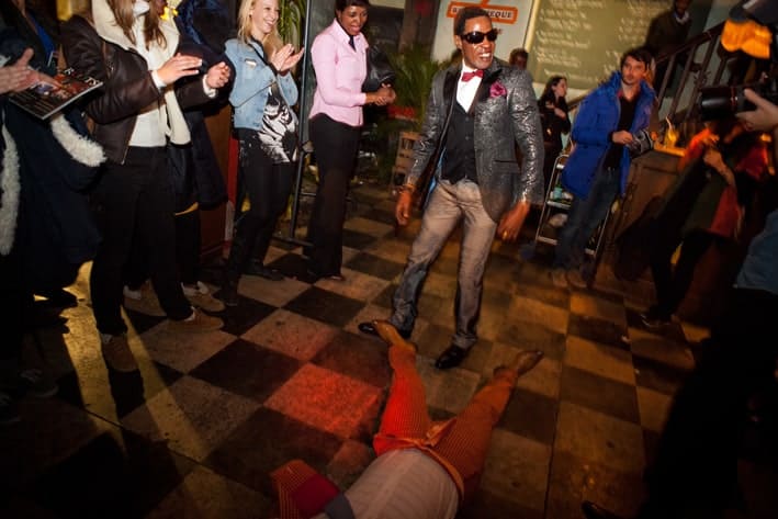 —¿De qué marca son tus zapatos?—Son Weston.—¿Cuánto cuestan?—Setecientos euros. Como ahora tengo una familia y ya no puedo abusar, tuve que resistir a las ganas de comprarme los de piel de cocodrilo, que cuestan más de mil.Es sábado en la noche, Le Comptoir Général, un enorme bar parisino que se define como ecorresponsable y abierto a las manifestaciones más diversas de las culturas del mundo, está repleto de una juventud de aire hipster. A eso de las diez de la noche, la música, el electropop de la francesa Yelle, se funde con el ajetreo sincopado de la rumba africana que suena todo el día en la boutique del Licenciado. Las luces del salón se van casi a negro y, desde una mezzanine, desciende él, con micrófono en mano, anunciado el inicio del jaleo. En medio de la penumbra, el Licenciado resalta como un faro. Lleva un traje naranja con enmallado café, camisa blanca y corbata celeste, y en lugar de cinturón tiene ajustada una corbata del color del salmón fresco. En la mezzanine le ayudó a vestirse su esposa, le acomodó el cuello de la camisa y le enderezó la corbata. Antes de que descendiera por la escalera, le dio un último chequeo a la armadura. Ella, una mujer guapa y más joven que él, va sencilla, con una blusa blanca y un pantalón oscuro y liviano.—Confieso que ella es más elegante que yo, pero en realidad la SAPE no es su afición —dice el Licenciado, y le guiña el ojo.Como maestro de ceremonias, el Licenciado es grandioso. Con un saludo de su voz algodonosa arranca uno de los desfiles —esporádicos—, en los que actualmente es posible ver a algunos sapeurs en su prestancia. ElLicenciado lo organizó directamente con los encargados del bar. Más que una exposición sobre los entretelones de la SAPE, es una promoción de su marca. El primero en desfilar por entre las mesas que han abierto un callejón es el sapeur Modero: traje gris, camisa celeste, corbata, tirantes y pañuelo en rojo mate. El Licenciado lo presenta como el patrón de la elegancia clásica. Luego aparece Mika: traje azul, camisa blanca y corbata con los colores de la bandera francesa. Cuando se levanta la basta derecha muestra un calcetín con un estampado de la Torre Eiffel. Una mitad del auditorio festeja como ante un show de rarezas, la otra cruza miradas que mezclan desconcierto y desdén. El Licenciado se entusiasma, pide aplausos, más cariño. Pasa luego Fuluz: gafas de sol, traje rosa discreto, un desafío prudente a lo convencional. En la mitad del recorrido, Fuluz abre una sombrilla que tiene el mango como el de una muleta: una evocación grandilocuente a la protección que se debe el caballero ante los embates del temporal. La mitad entusiasta del público guarda las escenas en sus teléfonos móviles, la otra empieza a moverse inquieta para llegar hasta la barra. El Licenciado pide aún más cariño para recibir el plato fuerte. Taconeando contra el piso y extendiendo los brazos para recibir el calor aparece Norba de París: lentes oscuros, chaqueta niquelada, pantalón gris metálico, chaleco negro, pajarita y pañuelo en rojo burdeos, una simbiosis sonriente de Lenny Kravitz y Dennis Rodman. Cuando Norba llega a la mitad del recorrido, el Licenciado se tira boca arriba, a sus pies, y deja caer su cabeza hacia un costado: la pinta de Norba de París lo ha aniquilado. Por último salen seis muchachos blancos y espigados vistiendo trajes de colores pastel, entre ellos dos hermanos con el talante de los gemelos Winklevoss de The Social Network. "Mis pequeños", dice el Licenciado cuando presenta al grupo. A uno de ellos, que lleva como parte del atuendo un pith helmet, el sombrero clásico que los colonos europeos utilizaron en tierras tropicales a fines del siglo XIX, le ganó la novelería cuando se enteró de la SAPE en una exposición que organizó en 2009 el museo parisino Dapper, y luego se la contagió a sus amigos. Cada uno se mandó a hacer un traje con el Licenciado, y juntos fueron "sapeados" para la boda de otro amigo de ellos. Fueron la sensación de la velada.Los desfiles en los que antes los sapeurs ponían a prueba el savoir faire de su credo como una forma de alcanzar distinción en su comunidad y como un signo de experiencia acumulada —repertorio propio de gestos, lenguaje oral incluido—, hoy son puestas en escena rimbombantes compartidas con un entorno extraño que reacciona ante ellas como ante un espectáculo de variedad exótica.